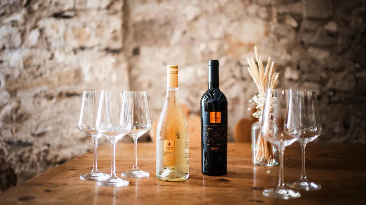 • 4 vini di produzione propria: Chardonnay, Pinot Grigio, Manzoni Bianco, Teroldego